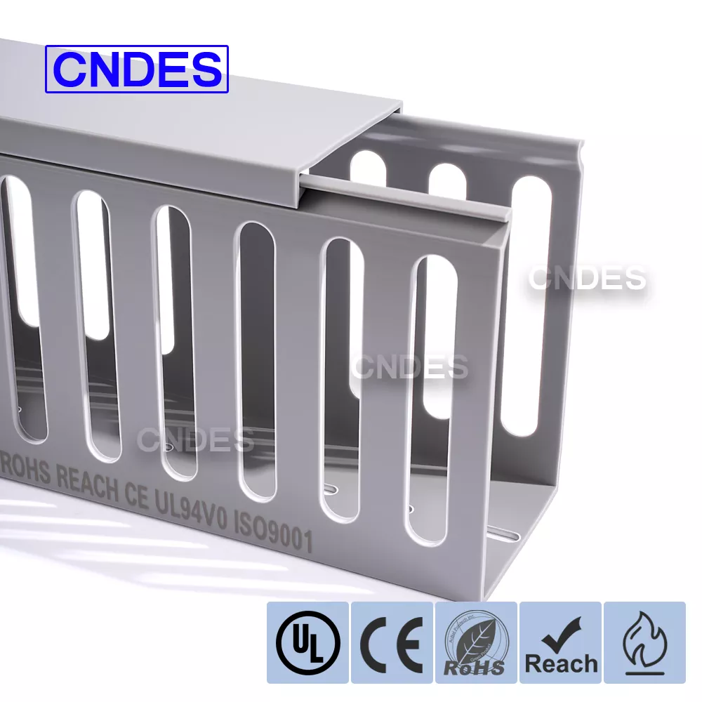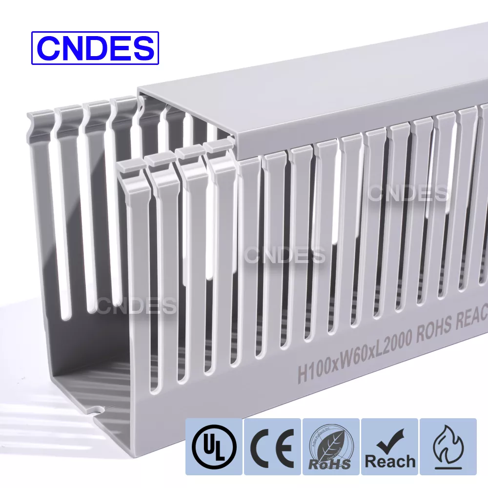 Precision Slot- Precision Grooving - လျှပ်စစ်အကန့်များအတွက် အရည်အသွေး 100 × 60 PVC Duct သည် ကေဘယ်များကို မည်သည့်အနေအထားမှ သန့်ရှင်းစွာထွက်နိုင်စေမည့် တူညီသောအပေါက်ဒီဇိုင်းတစ်ခုပါရှိသည်။ စိတ်ကြိုက်အပေါက်ပုံစံများကို ရွေးချယ်နိုင်သည်..