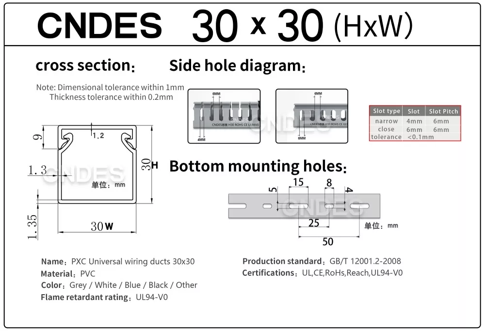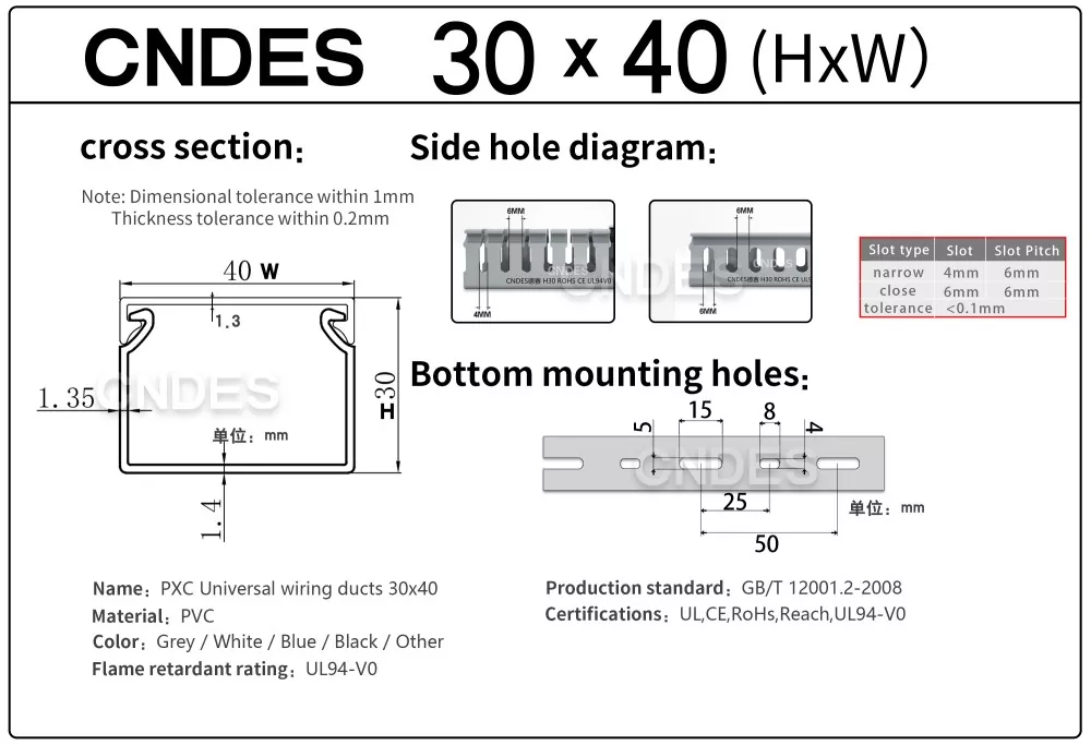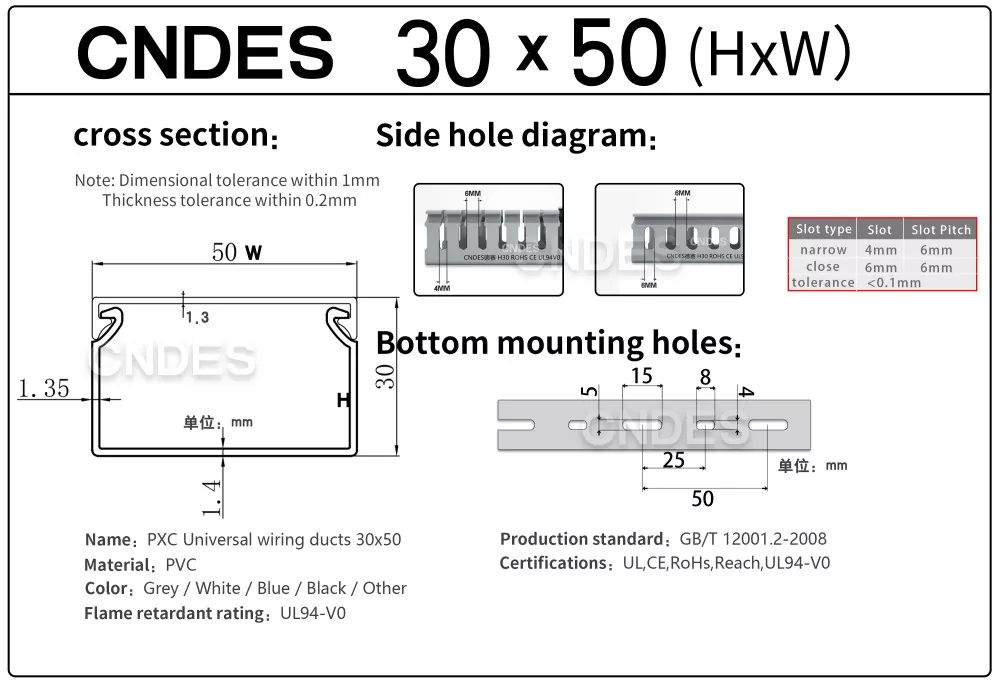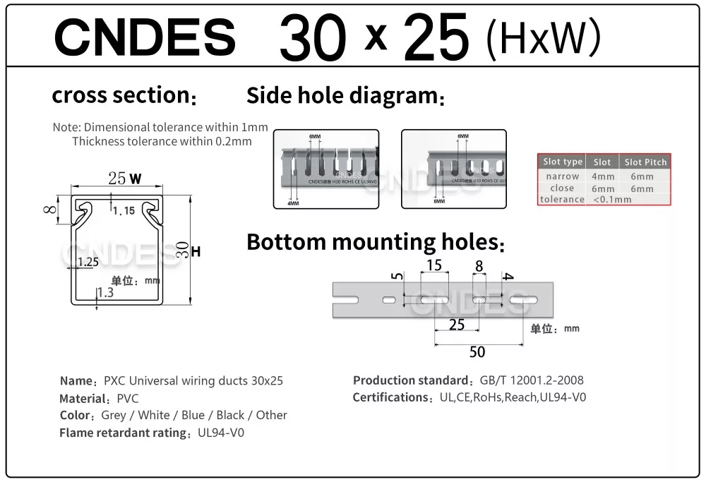 ၎င်းတွင် ကျွန်ုပ်တို့၏ အရည်အသွေး 30mm Height Slotted PVC Cable Management Duct ၏ အထူ၊ အတိုင်းအတာနှင့် တူးဖော်ခြင်းကဲ့သို့သော အချက်အလက်များ ပါဝင်သည်။